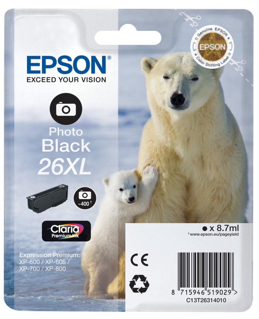Epson 26XL cartouche d'encre photo noir 8,7ml 400 photos T263140