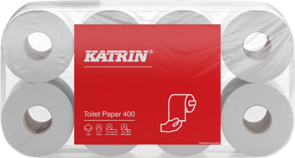 Katrin papier toilette, 2 plis, 400 feuilles par rouleau, paquet de 8 rouleaux