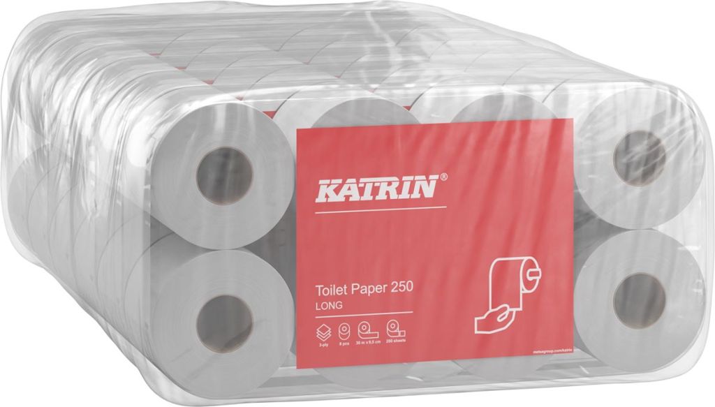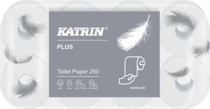 Katrin papier toilette, 3 plis, 250 feuilles par rouleau, paquet de 8 rouleaux
