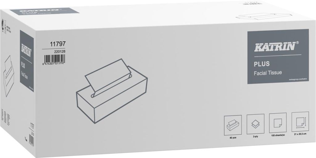 Katrin Plus mouchoirs en papier, 2 plis, boîte de 100 feuilles