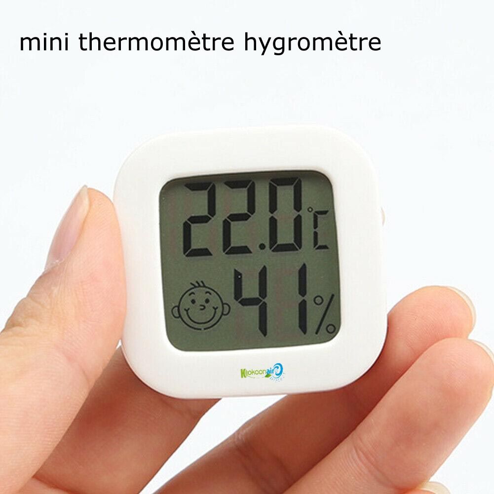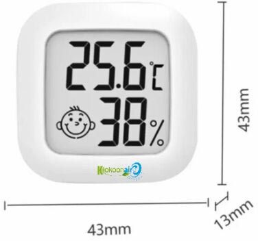 - Affichage numérique de température et humidité Fonctionne sur 1 pile CR2032(non incluse) Ft 10,5 x 9,8 x 2,4 cm Couleur: blanc