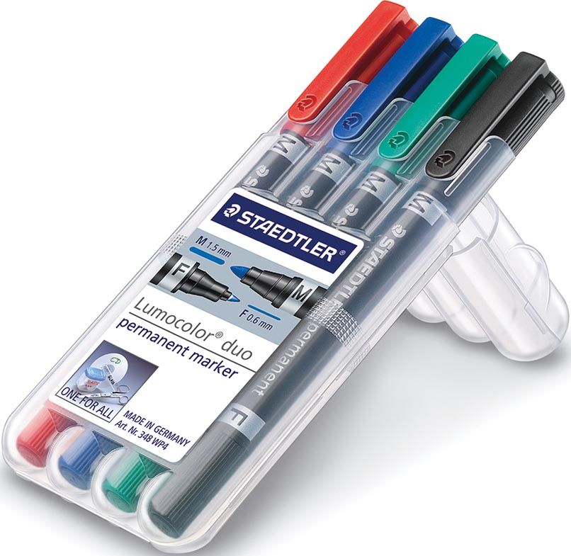 Staedtler Lumocolor Duo 348, marqueur permanent, boîte de 4 pièces en couleurs assorties