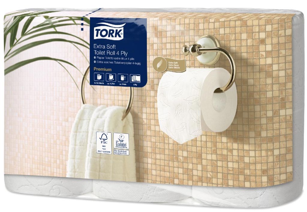 Tork papier toilette Extra Soft, 4 plis, système T4, paquet de 6 rouleaux