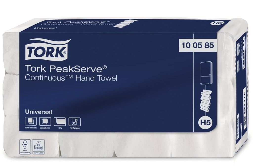 Tork Peakserve Continue essuie-mains, 1-plis, H5 Universal, blanc, paquet de 12 pièces