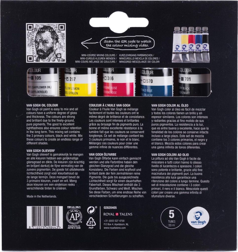 Van Gogh set de mélange primaire, peinture à l'huile, 5 x 40 ml