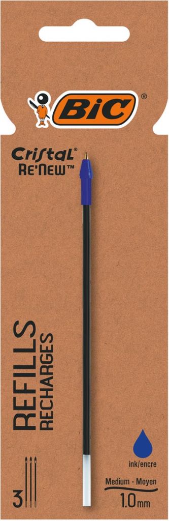 BIC Cristal Re-New balpenvulling, medium, 3 st, blauw