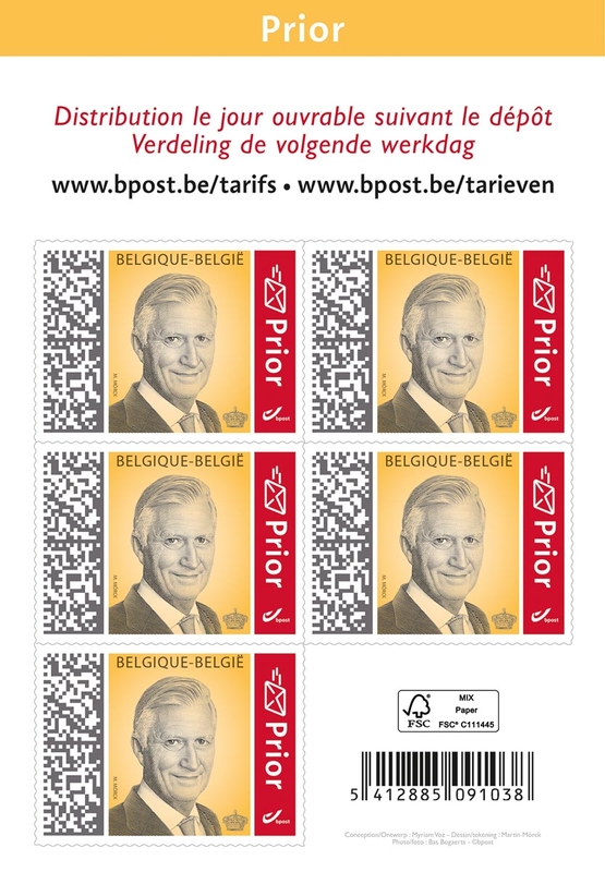 Bpost postzegel nationaal, Koning Filip, blister van 50 stuks, prior