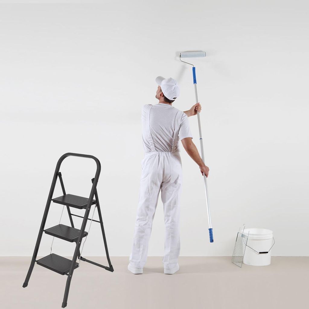 - Uit metaal Gelakt staal voor extra duurzaamheid Grote treden met antislipmat: 30 x 20 cm Draagvermogen: 150 kg Antislipvoetjes Kleur: zwart Warenwet gecertificeerd 3 treden, gewicht: 5,5 kg
