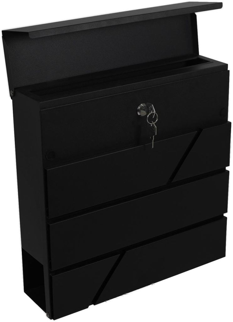 - Inclusief 2 sleutels Kan aan de muur bevestigd worden Uit gegalvaniseerd staal Ft brievenbus: 37,5 x 36,5 x 11 cm Ft gleuf: 23 x 3,3 cm zwart