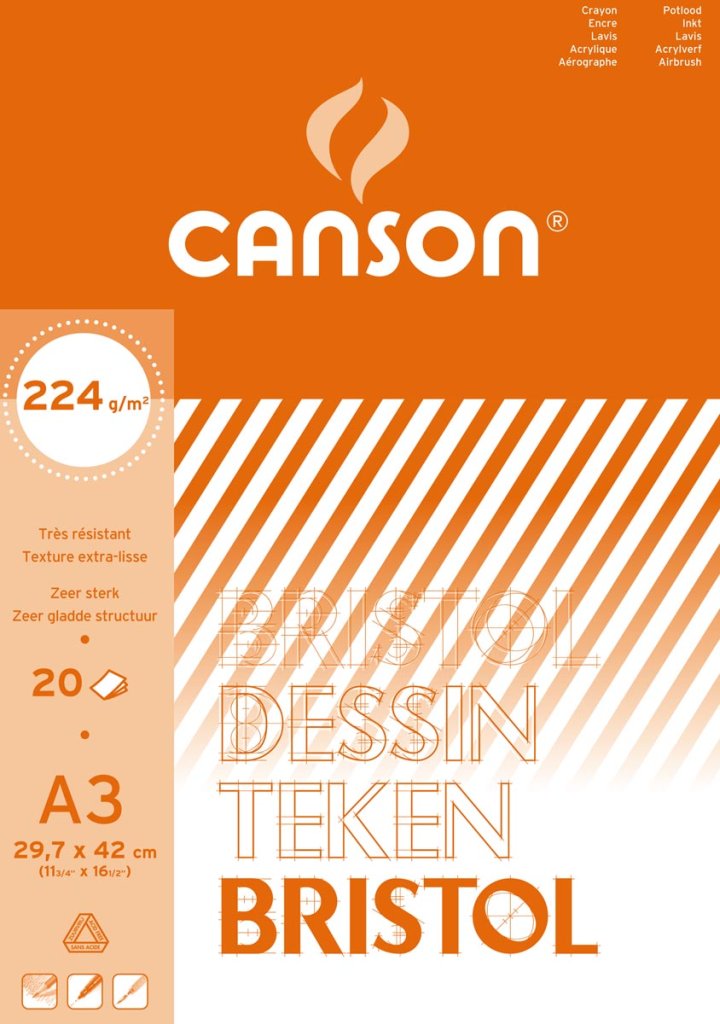 Canson tekenblok Bristol A3 - wit - 20 blad