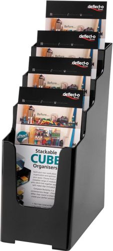 Deflecto folderhouder ft 1/3 A4, 4 opbergvakken, zwart