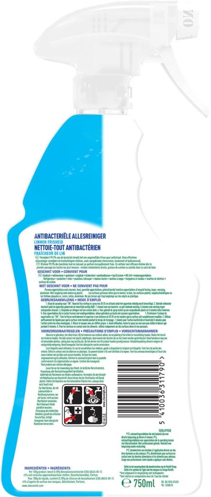 - Multi-oppervlakken spray verwijdert 99,9% van de bacteriën Flacon van 750 ml katoenfris