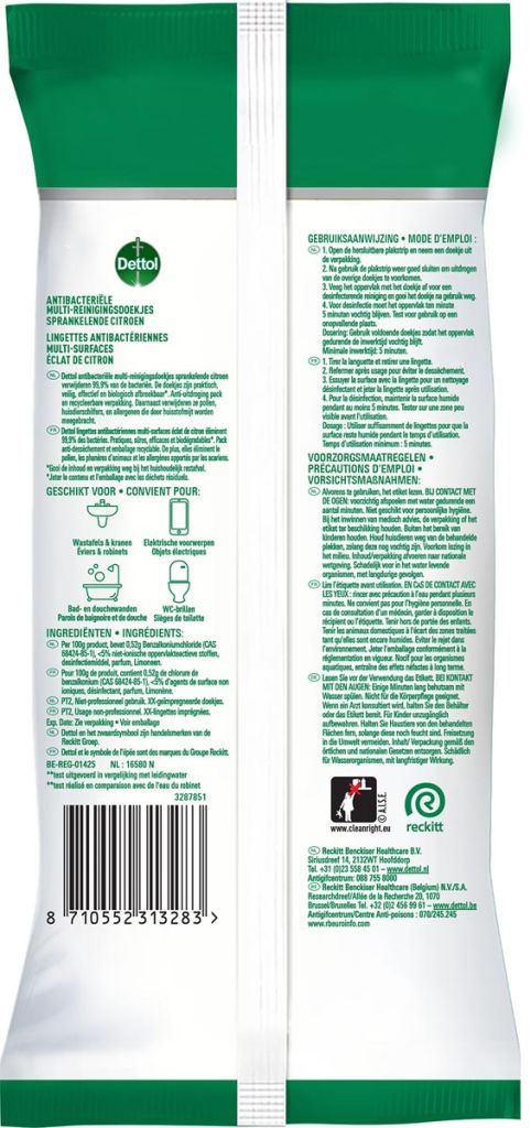 - Multi-reiningsdoekjes die 99,9% van de bacteriën verwijderen citroen, pak van 30 stuks