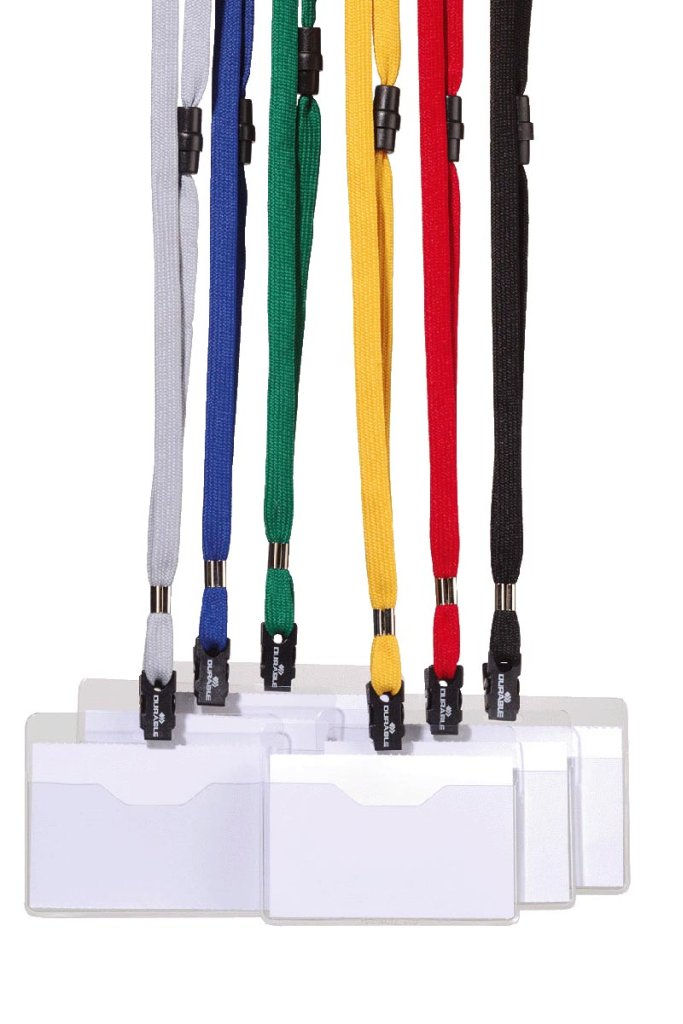 - Het naambordje van hoogtransparante hardfolie wordt aan een 10 mm brede textielband met veiligheidssluiting bevestigd