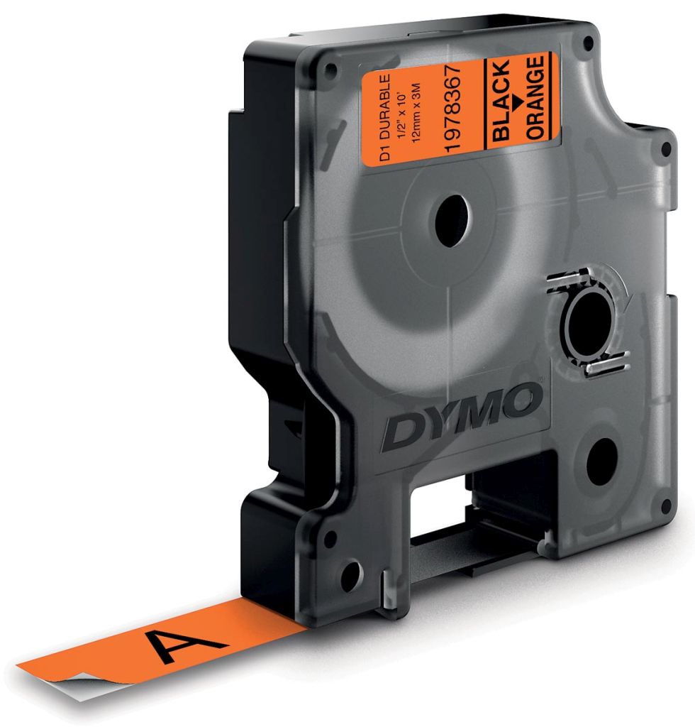 Dymo duurzame D1 tape 12 mm x 3, zwart op oranje
