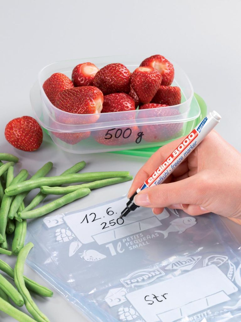 - Voor het beschrijven, merken en markeren van diepvrieszakken en diepvriesdozen