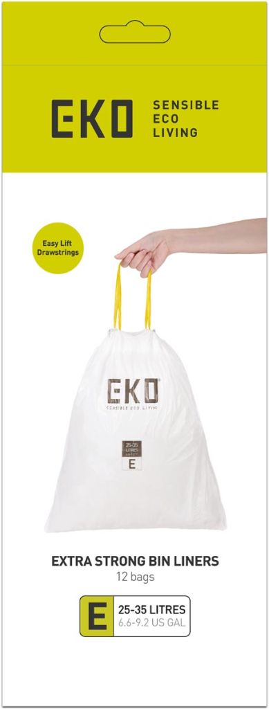 - Uit extra sterke plastic Geschikt voor EKO afvalbakken of prullenbakken met vergelijkbare afmetingen Voorzien van handige trekband voor het makkelijk sluiten en dragen van de vuilniszak Kleur: wit inhoud: 25-35l, type E, pak van 12 stuks