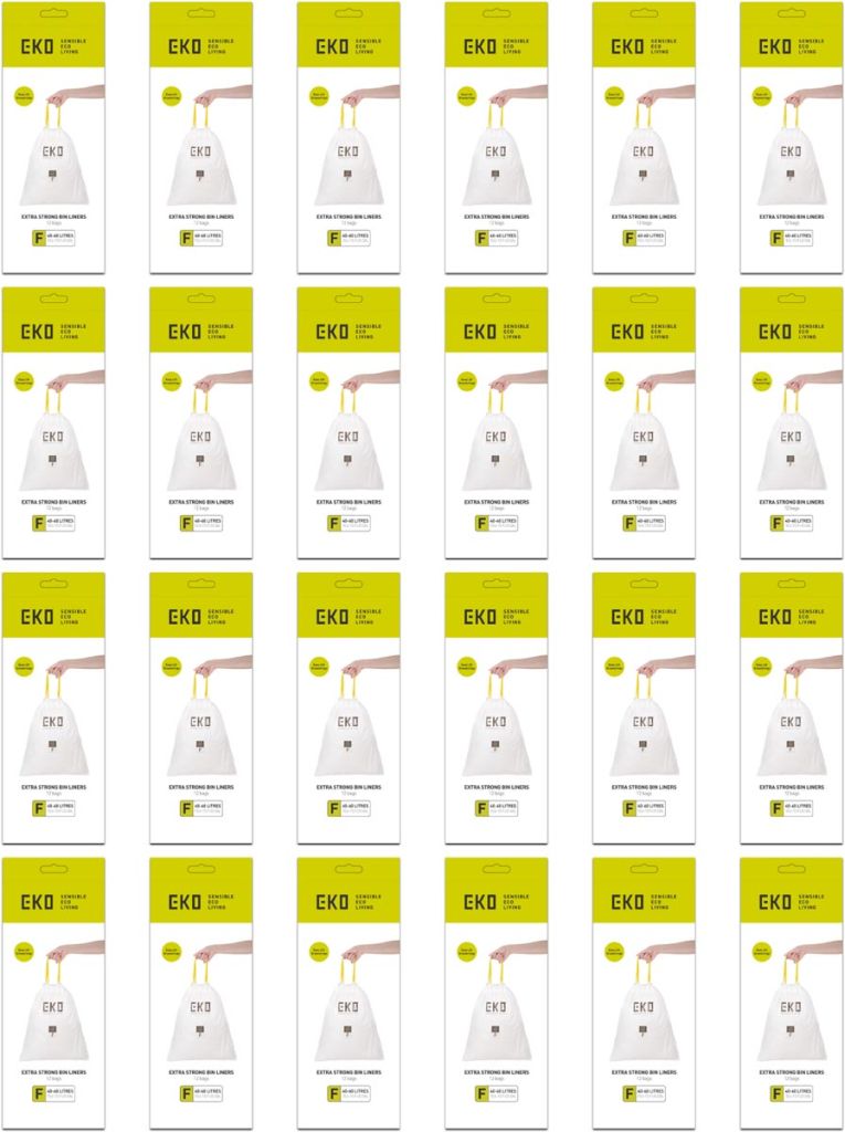 - Uit extra sterke plastic Geschikt voor EKO afvalbakken of prullenbakken met vergelijkbare afmetingen Voorzien van handige trekband voor het makkelijk sluiten en dragen van de vuilniszak Kleur: wit inhoud: 40-60 l, type F, pak van 12 stuks