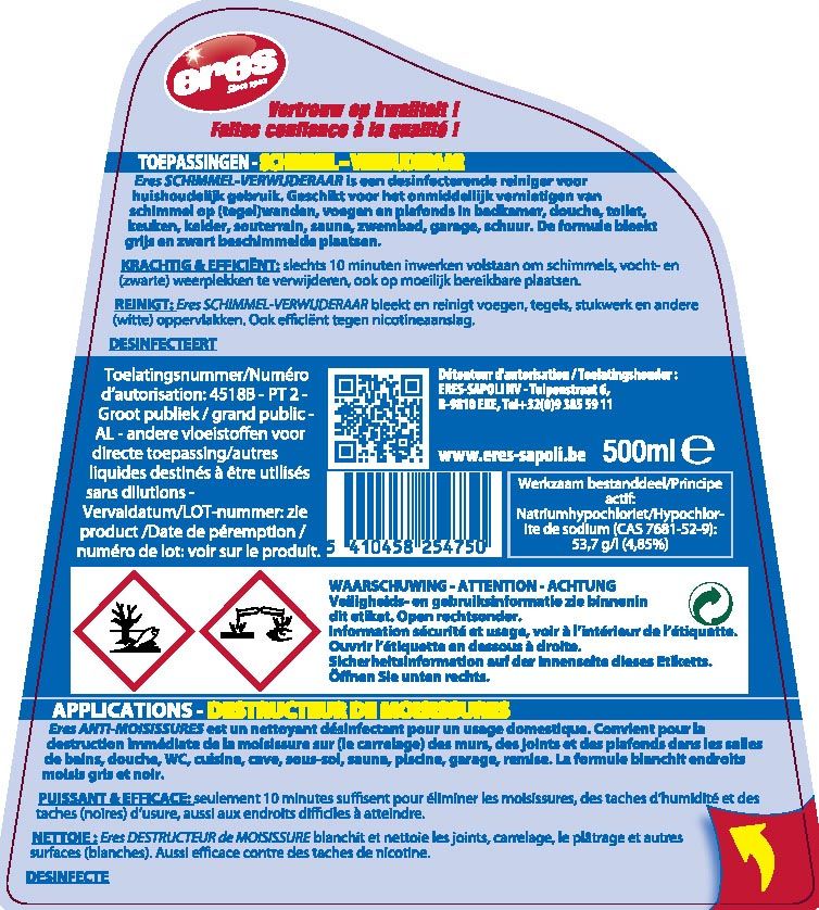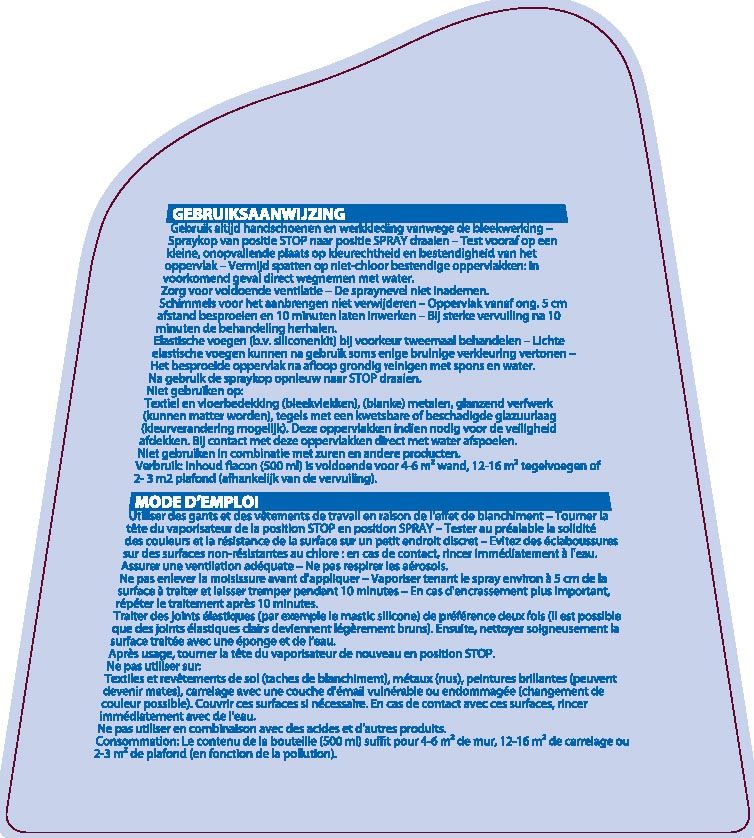 - Krachtige en efficiënte reiniger Vernietigt snel schimmels en verwijdert vochtvlekken Geschikt voor tegelwanden, -voegen en plafonds in badkamer, douche, toilet, keuken, kelder, souterrain, sauna, zwembad, garage, schuur Bleekt grijs en zwart beschimmelde plaatsen Ook efficiënt tegen nicotineaanslag Desinfecterende werking Spray van 500 ml