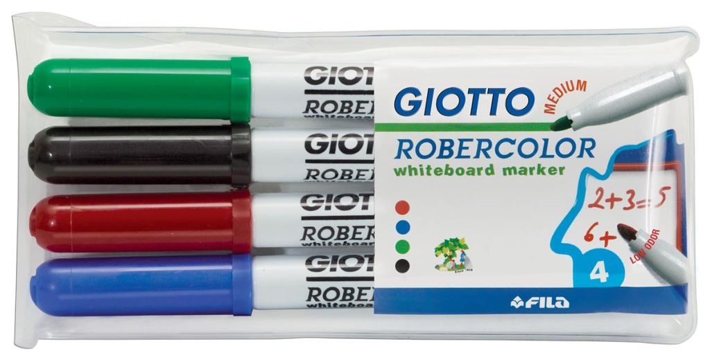 Giotto Robercolor whiteboardmarker, medium, ronde punt, etui met 4 stuks in geassorteerde kleuren