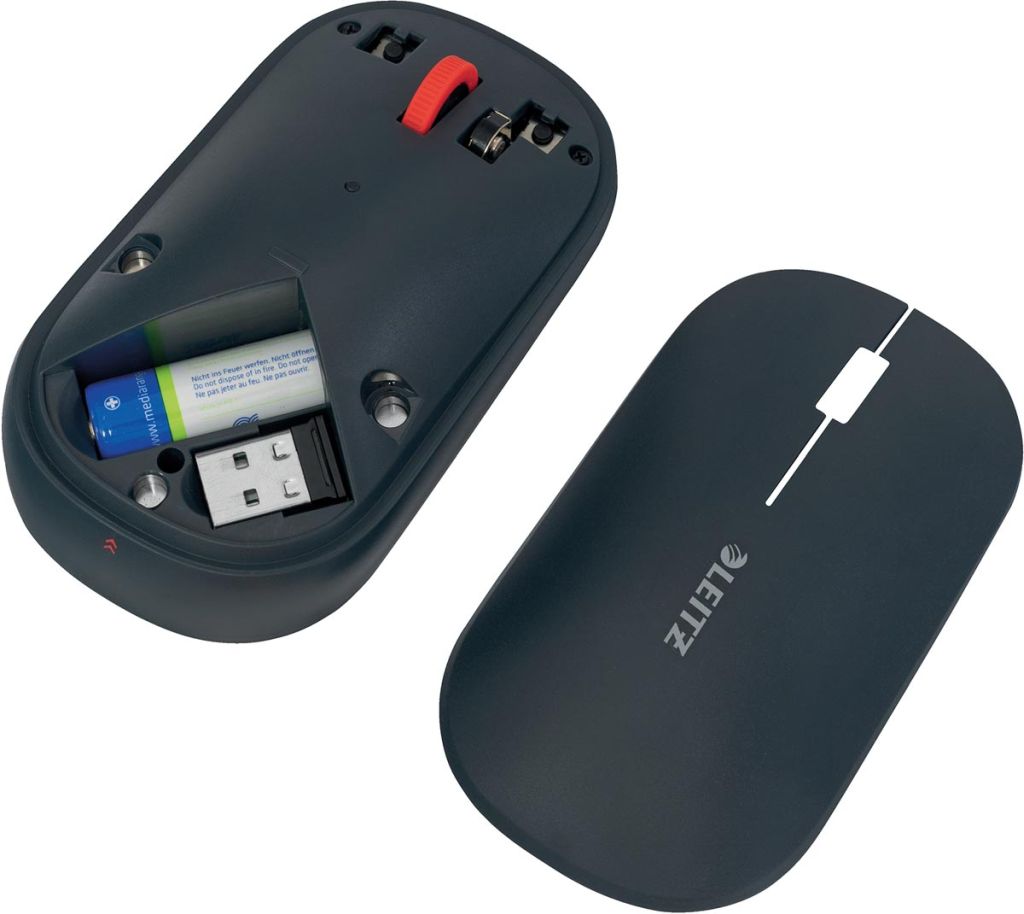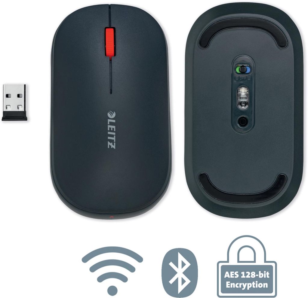 - Instelbare opties voor draadloze connectiviteit (2,4 GHz (met opbergbare micro-USB-ontvanger), Bluetooth 3.0 en Bluetooth 5.0) Voor zowel rechts- als linkshandigen Met 3 knoppen Aanpasbare gevoeligheid (1200 - 2400 - 4000 dpi) Draadloos bereik van 10 m Werkt op 1 AA batterij (meegeleverd) fluweel grijs (velvet grey)