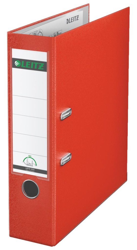 - Voor ft A4 Zeer stevige omslag gemaakt van 30% pre-consumer gerecycled PP-folie en PE-gelamineerd papier aan de binnenkant op stevig 90% post-consumer gerecycled karton voor langere duurzaamheid Met hefboommechanisme 180°, voor 50 % bredere opening en 20% sneller archiveren Met metalen sleuven, grijpring op de rug en randbeschermers Met verwisselbaar rugetiket FSC Mix gecertificeerd lichtrood, rug van 8 cm