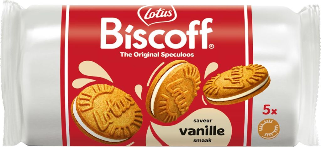 Lotus Biscoff gevulde speculoos, display van 16 stuks met 5 koekjes, 50 g, vanille