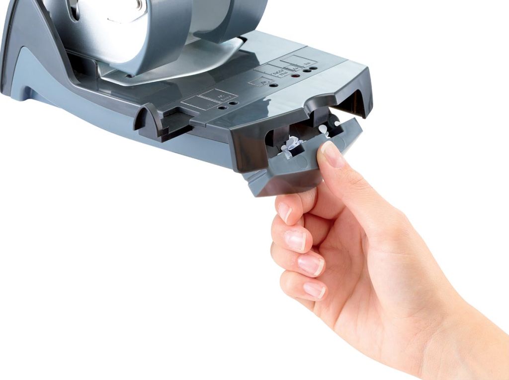 - Dankzij het mechanisme is er tot 50 % minder kracht nodig om te perforeren