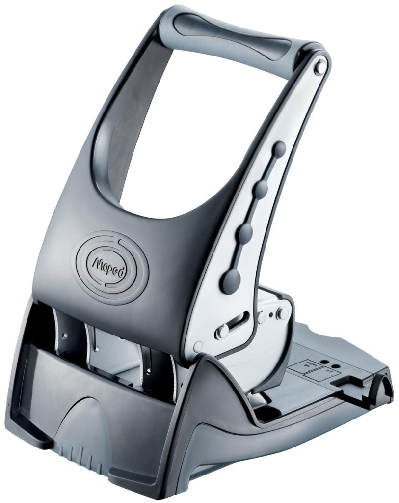 - Perforator met grote, ergonomische hefboom, vervaardigd met zachte materialen en ronde vormen