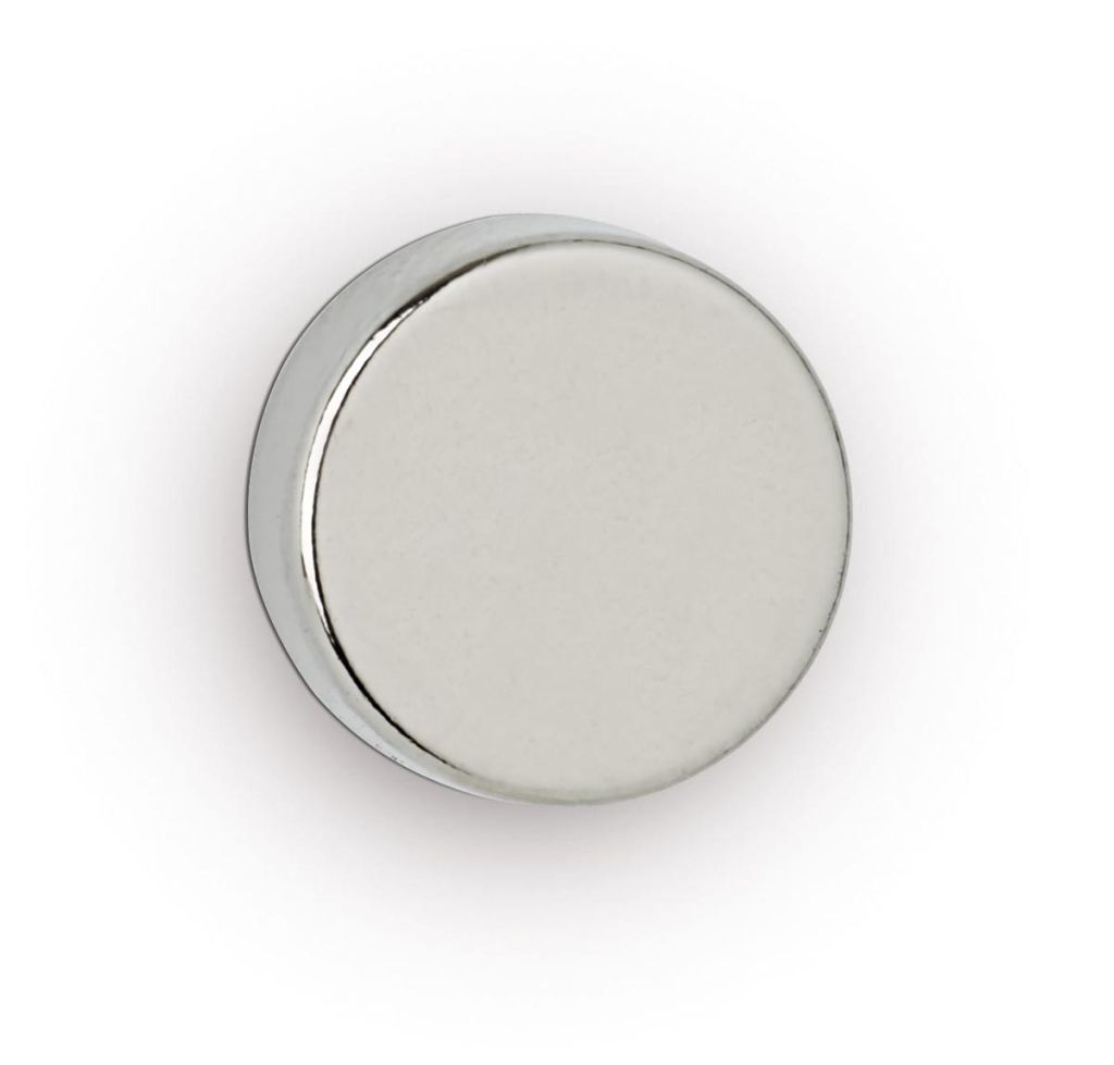 MAUL neodymium schijfmagneet, ft 12 x 3 mm, trekkracht 2,5 kg, zilver, blister van 10 stuks