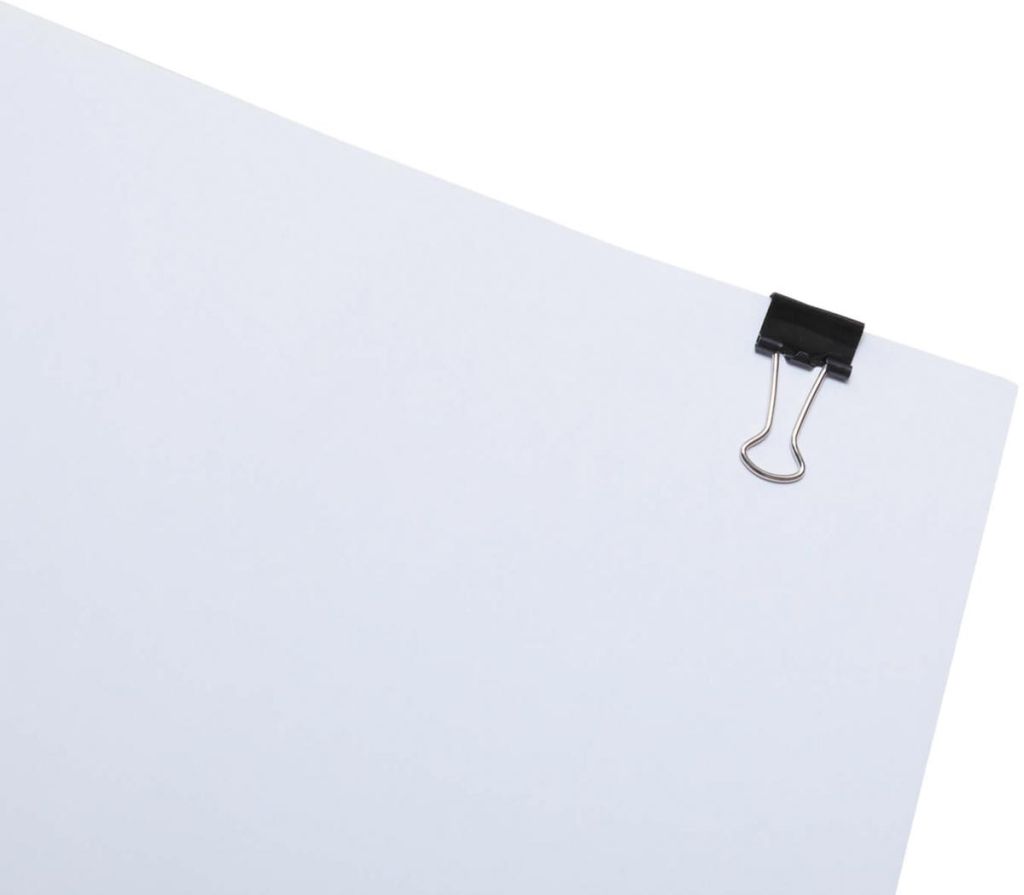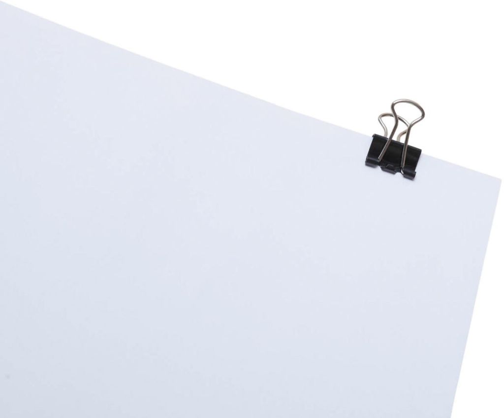 - Open de papierklem door de metalen beugels naar achteren te klappen en samen te knijpen, sluiten van de klem door de beugels weer los te laten en eventueel naar voren klappen
