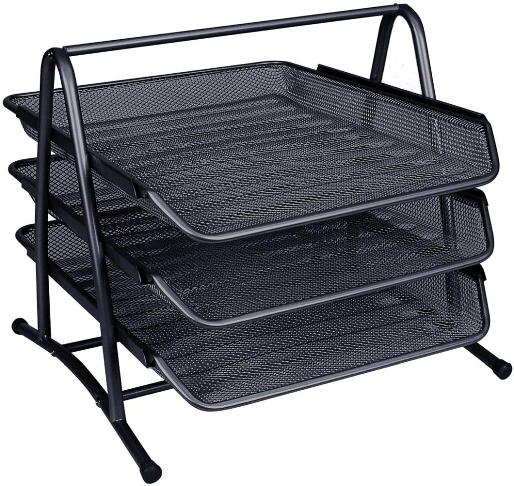 Q-CONNECT 3 brievenbakjes, mesh metaal, ft A4, zwart