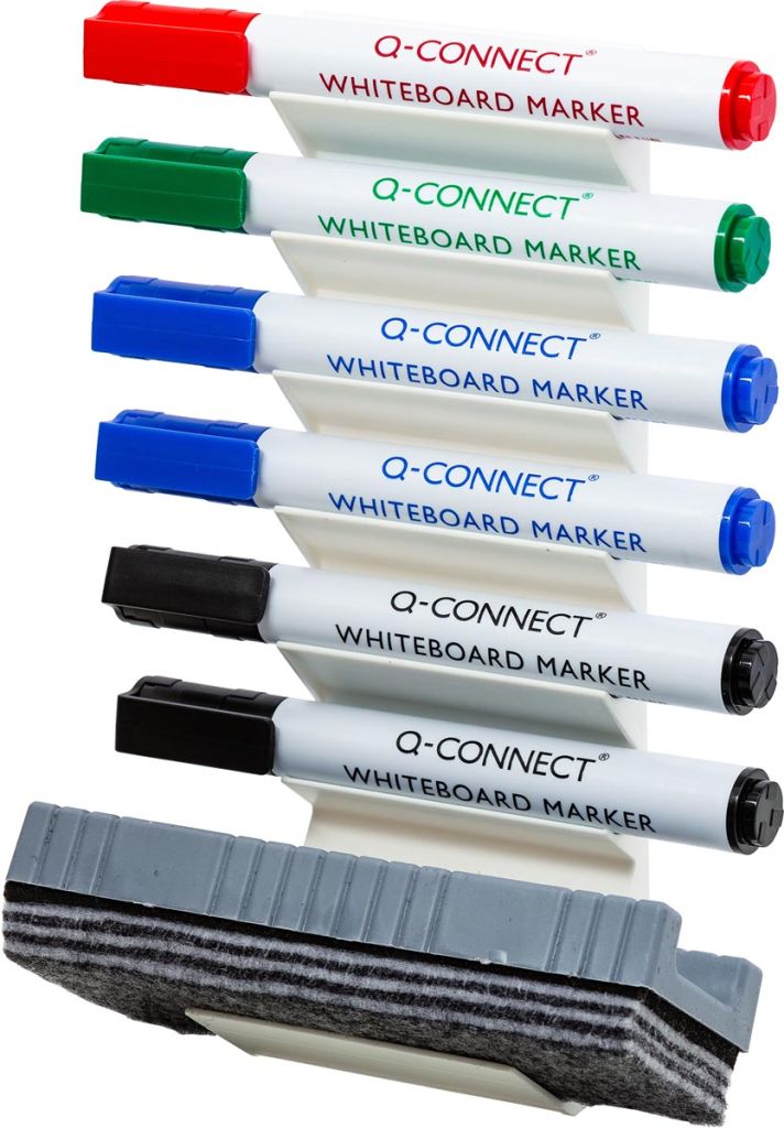 - Zelfklevend Houder inclusief 6 whiteboardmarkers (1 x groen, 1 x rood, 2 x zwart en 2 x blauw) en 1 wisser