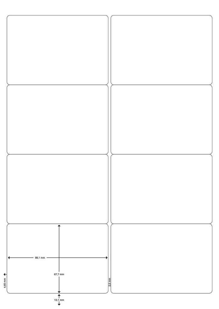 - ft 99,1 x 67,7 mm, ronde hoeken, 100 vel, 8 etiketten per vel, 800 etiketten