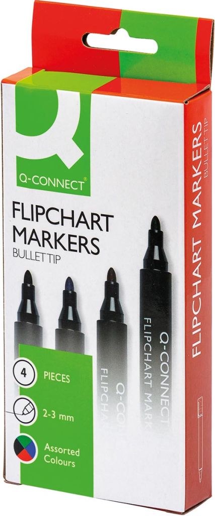 Q-CONNECT flipchartmarker, 2-3 mm, ronde punt, met clip, geassorteerde kleuren