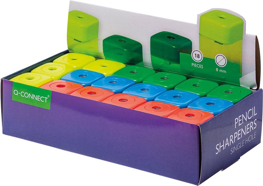 Q-CONNECT potloodslijper, 1 gaats, geassorteerde kleuren