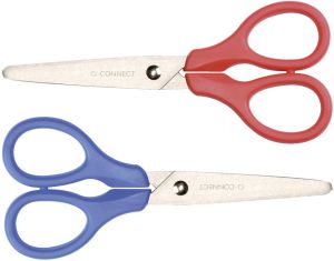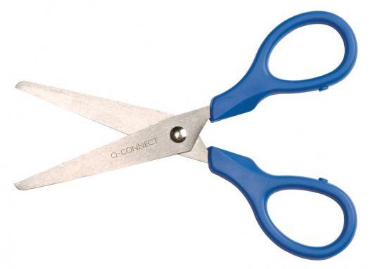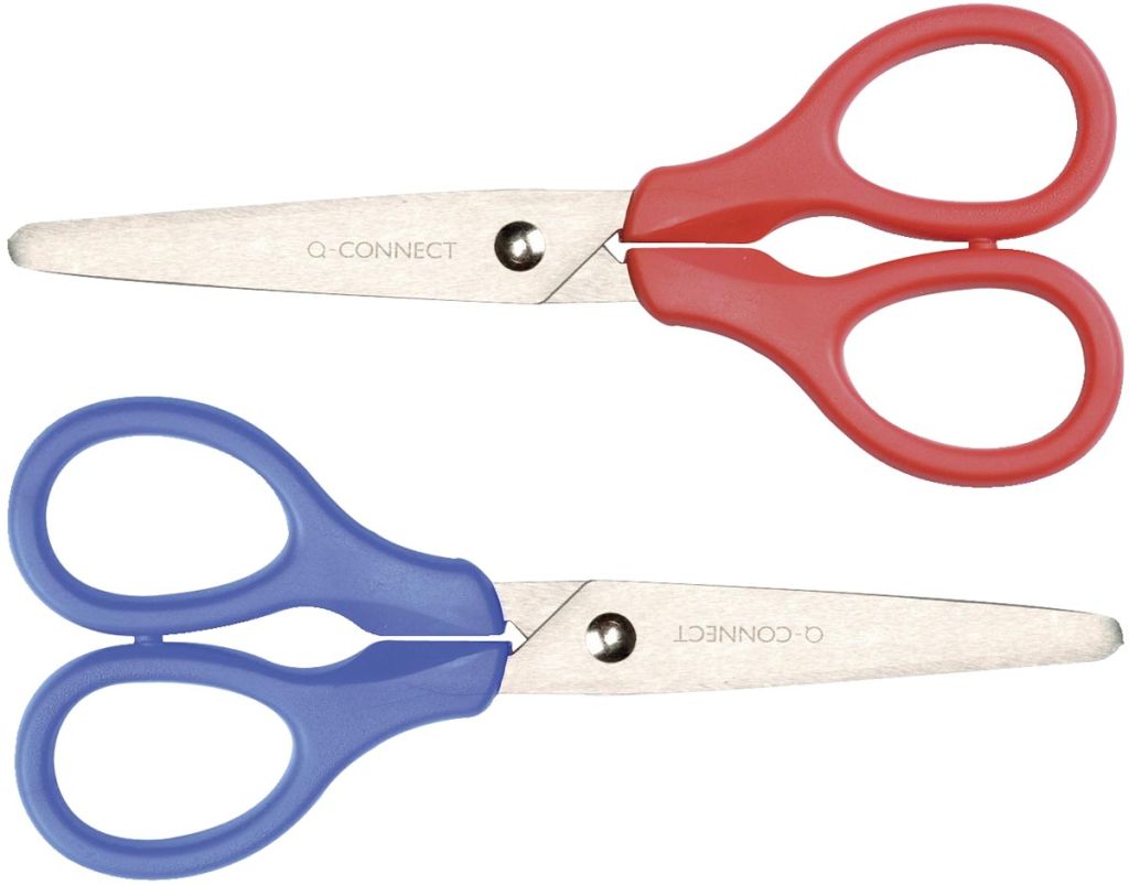 Q-CONNECT schaar, ft 13 cm, rechts en links, ronde punt, RVS, geassorteerde kleuren, blister van 1 stuk