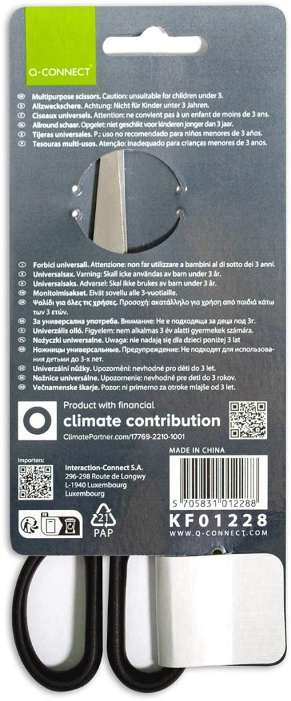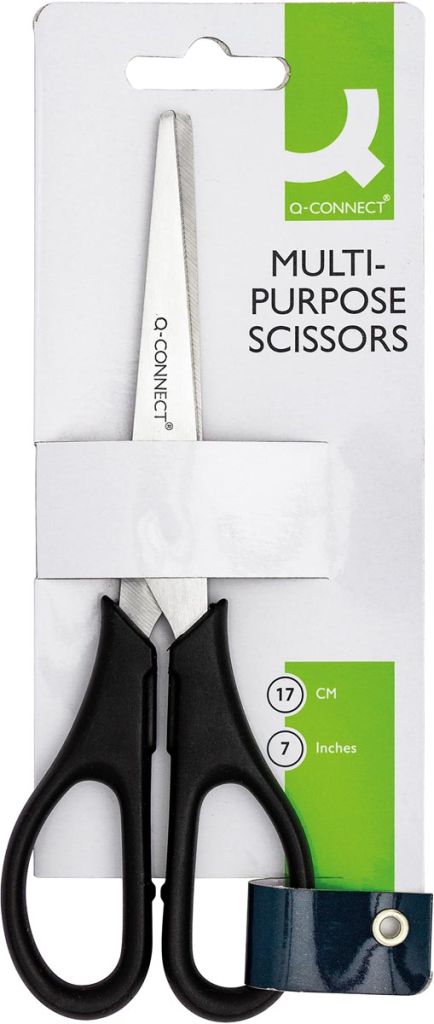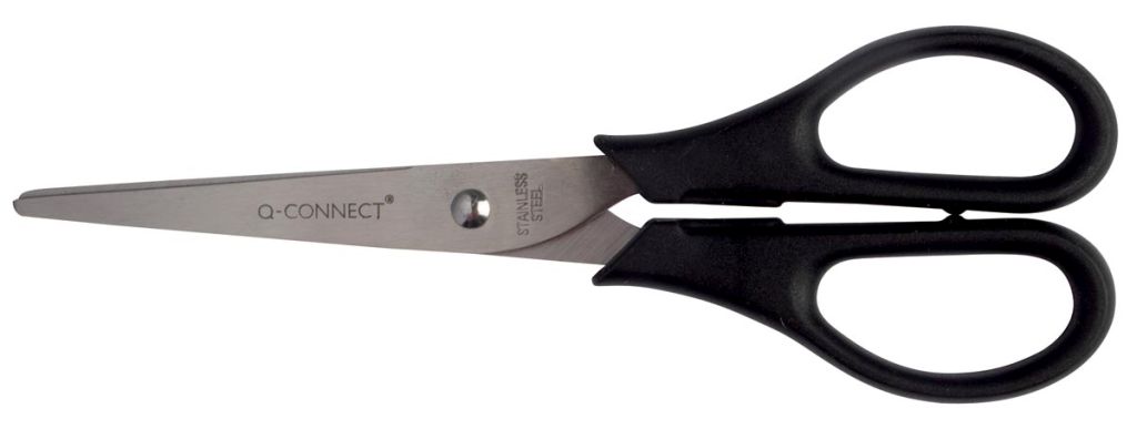 Q-CONNECT schaar, ft 18 cm, rechts en links, ronde punt, RVS, zwart, blister van 1 stuk