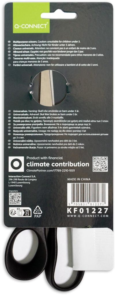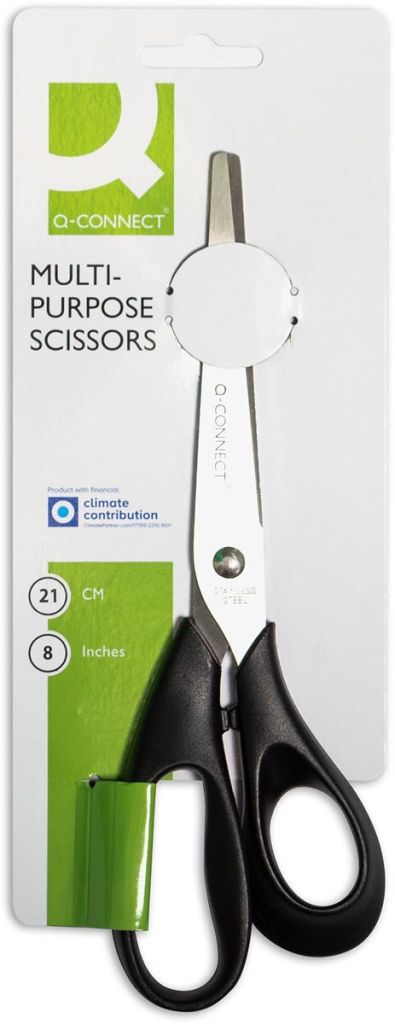 Q-CONNECT schaar, ft 21 cm, rechts, ronde punt, RVS, zwart, blister van 1 stuk