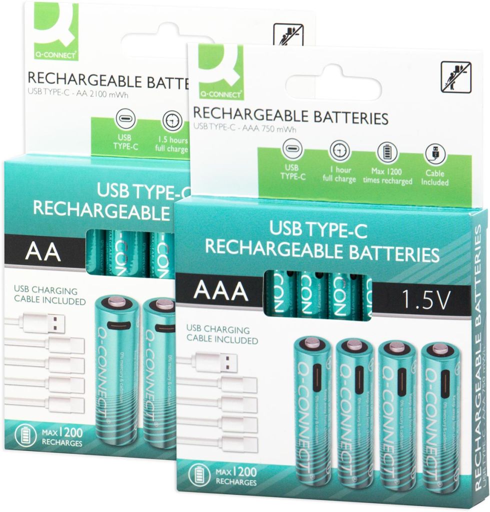 Q-CONNECT USB-C herlaadbare batterijen AA, blister van 4 stuks
