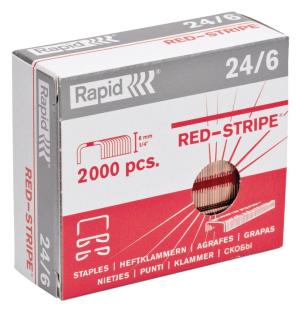 - 24/6, Red Stripe, verkoperd, doos van 2.000 nietjes
