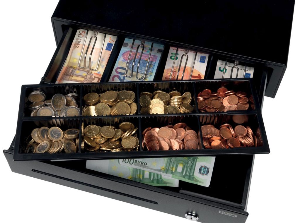 Deze standard-duty kassalade is ideaal voor gebruik in retail, horeca, scholen, clubs, kerken en andere non-profit organisaties. Dankzij de robuuste kogellagers is deze kassalade getest om minimaal 1 miljoen keer te openen. Open de kassalade door eenvoudig tegen de voorzijde van de lade te duwen, of sluit hem aan een RJ12 bonprinter of kassasysteem aan voor automatisch openen. Ideale lay-out voor Euro, met 4 verstelbare bankbiljetvakken en een verwijderbaar en aanpasbaar compartiment voor 8 muntsoorten. Inclusief afroomgleuf voor het bewaren van bankbiljetten met hoge waarde en waardepapieren.