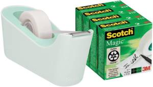 Scotch verzwaarde plakbandafroller inclusief 4 rollen Scotch magic tape, muntgroen