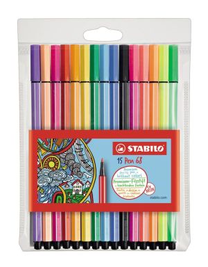 STABILO Pen 68 viltstift, etui van 15 stuks in geassorteerde kleuren