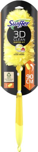 - Ergonomisch gevormde handvat voor een goede, comfortabele grip 3D Clean Swiffer stofdoekjes zijn 3 x dikker dan de normale Swiffer stofdoekjes voor nog beter opnemen en vasthouden Antistatische werking Flexibele kop, kan vastgezet worden 1 Swiffer Duster en 1 3D Clean doekje, kan tot 90 cm worden uitgeschoven