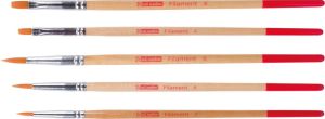 - ook geschikt voor aquarelverf, 5 penselen: 3 x rond nr 2, 4 en 6 en 2 x plat nr 4 en 6