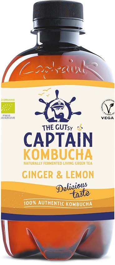 The Gutsy Captain Kombucha Ginger & Lemon, flesje van 400 ml, pak van 12 stuks