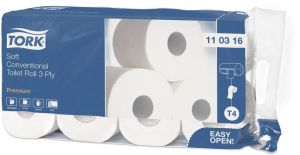 Tork Premium toiletpapier extra soft, 3-laags, 250 vellen, systeem T4, wit, pak van 8 rollen