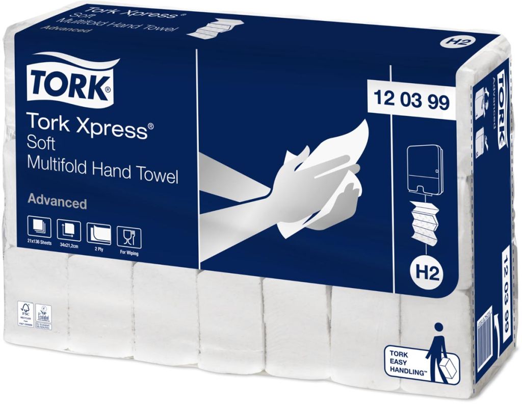 Tork Xpress Advanced handdoek 2-laags, systeem H2, wit, ft 34x21,2 cm, pak van 21 stuks