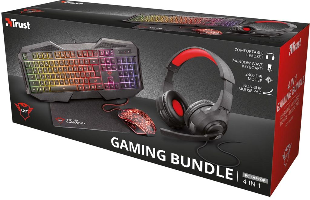 Trust GXT 1180RW 4-in-1 Gaming Set met headset, toetsenbord (qwerty), muis en muismat